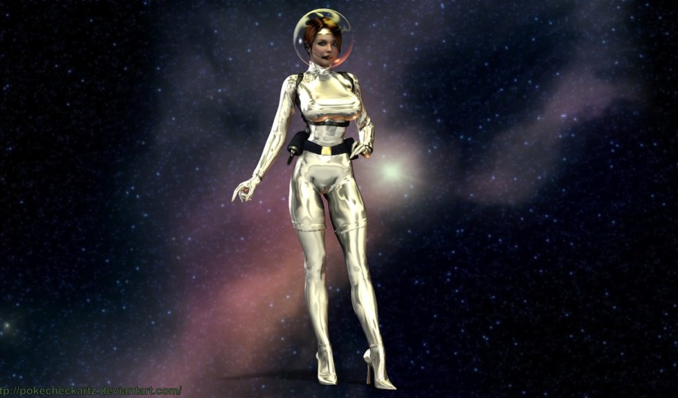 Especially if those silver “Space-Spanx™” have built-in “Fuck Me” pumps, a see-thru hair globe, and a HEADSET!
