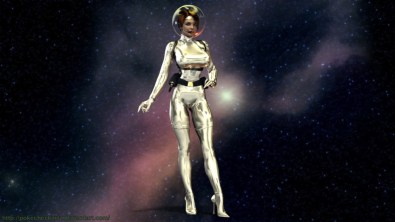 Especially if those silver “Space-Spanx™” have built-in “Fuck Me” pumps, a see-thru hair globe, and a HEADSET!