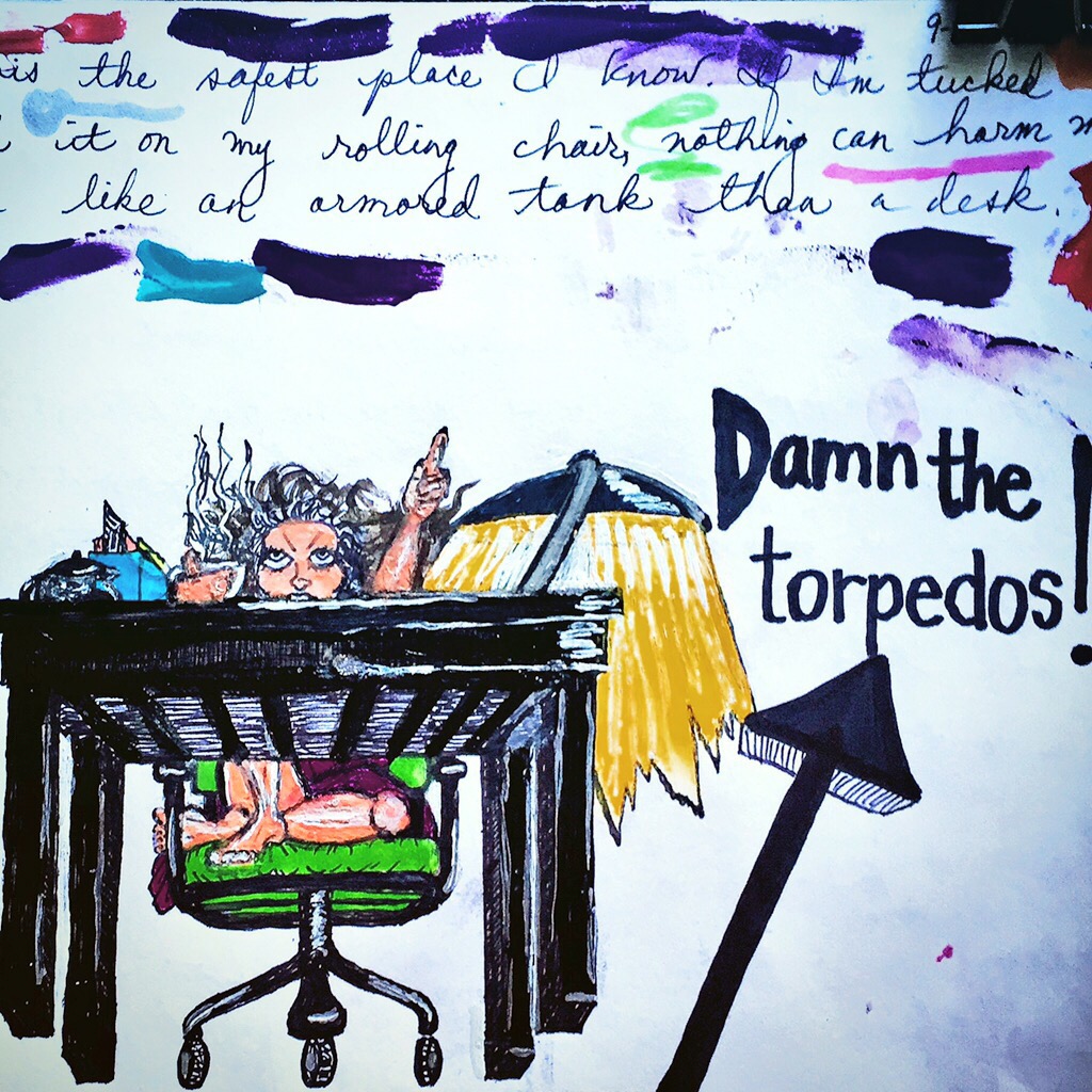 But if you’re serious about the art of worrying (as I am) you’ll do it in an optimal location. Mine happens to be my desk. My desk is the safest place I can think of. When my legs are twisted up like a pretzel on top of my rolling chair, and that chair tucked far under my massive black desk, it feels more like an armored tank than a desk. And I like it that way. (I absolutely refuse to purchase a table or desk not high enough to tuck my lap under it. It’s a thing with me.)